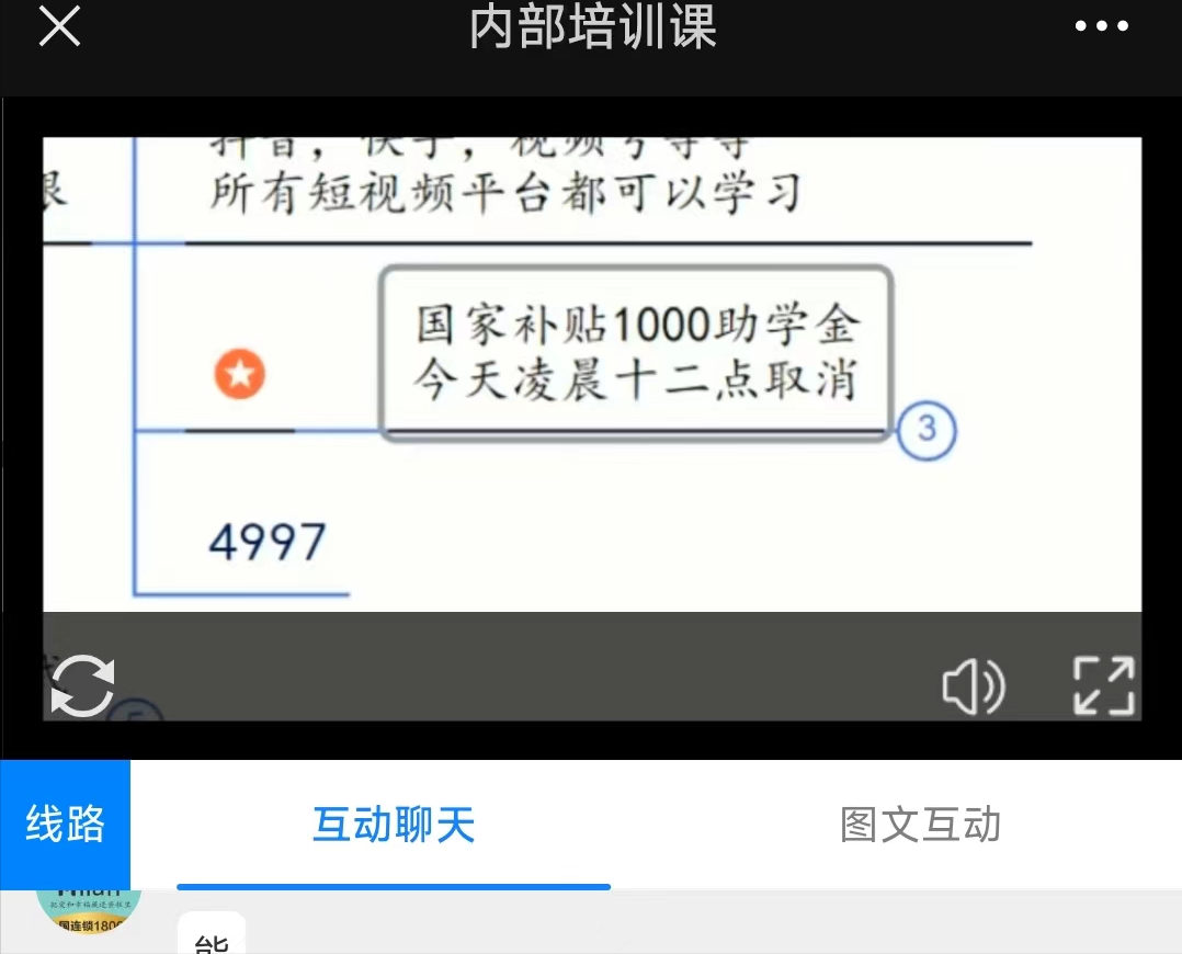 世界上没有免费的午餐,学习肯定是要交学费的这个学费也不是交给我的,这个是交给公司,我也不可能就靠你的学费赚钱。这个学费4997元。接着说国家有补贴1000助学金,今天凌晨十二点取消。现在报名就是3997元。