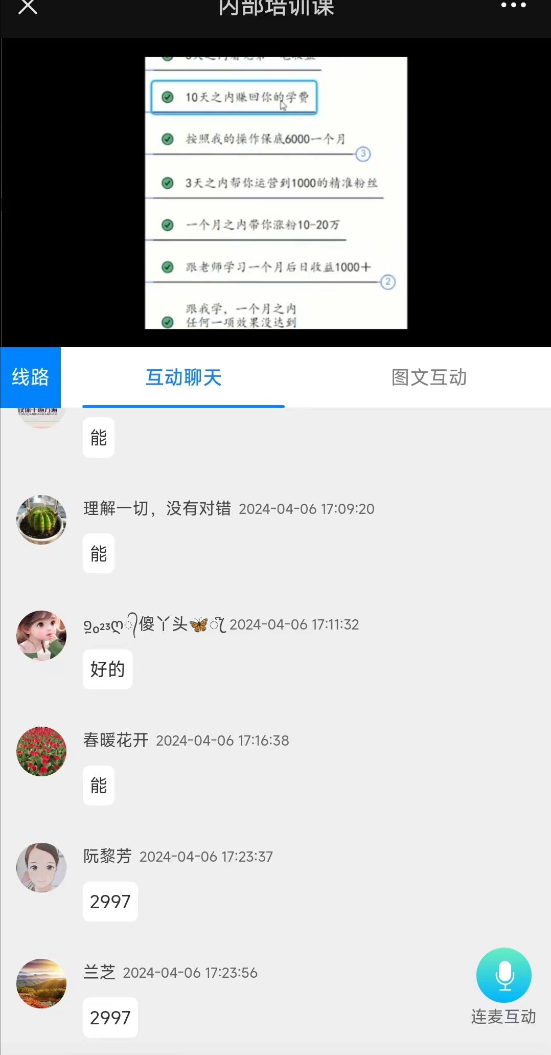 后面他们说在微信里面开始免费的培训课,可以看看。到点了给我打电话看我听没有听,一个下午两点开始,一个下午七点开始。