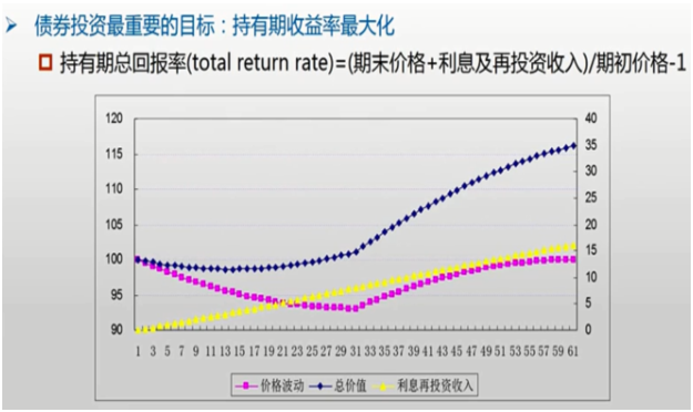 另外,债券持有到期,除了利息收益,还会产生交易价格的波动,比如下图,利息及再投资收入+债券价格波动,才是债券持有期的收益率。而导致债券价格波动的,涉及到宏观、中观、微观的很多因素,比如利率、流动性等。