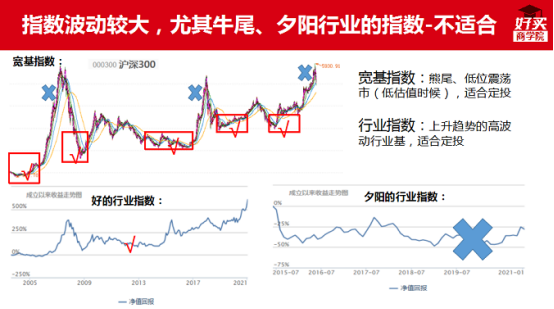 但是也会出现一些情况,跌了好几年,你熬不到那个时候,比如大宗商品;也可能熬下去了,是个夕阳赛道,一直外下走;还可能基金经理业绩一直平庸下去,即便偶尔几个好的年份。