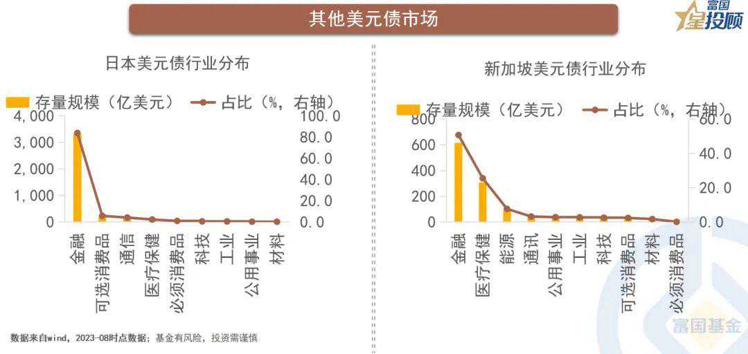 日本、韩国、新加坡、中东地区也较早的启动了美元债的发行。其中,日本由于本土融资成本较低,美元债发行起初并不积极,但近年来明显加速,2023年8月存量规模约3960亿美元(不含主权债)。新加坡相对开放,美元债发行更加平稳,规模虽然不大但平稳增长,2023年8月存量规模约1214.5亿美元(不含主权债)。