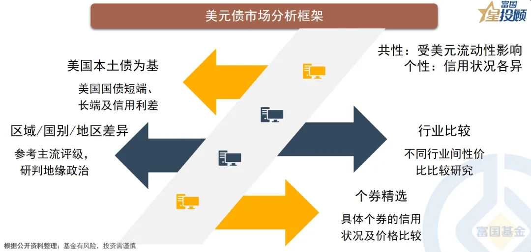 1)以美国本土债券市场为基准,2)考虑区域/国别/地区因素,3)就不同行业进行性价比比较,4)精选个券。