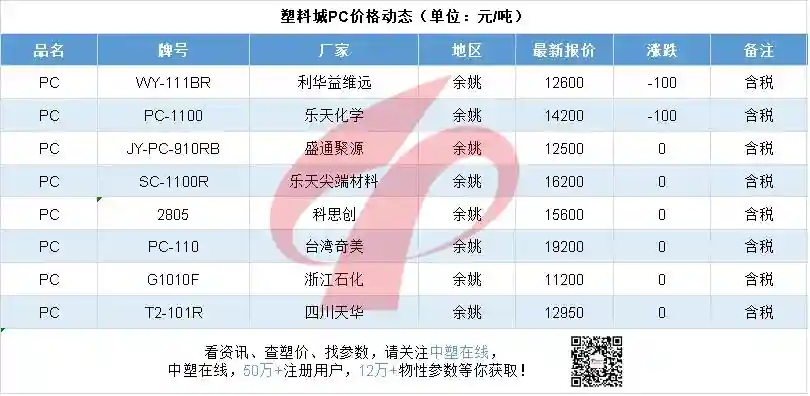 原料双酚A低位盘稳,成本端对PC支撑有限。目前PC价格不断触及低位,市场整体交投气氛较差,PC行业整体货源供应稳定充足,而下游需求未见有效改善,基本面表现较差,预计PC市场将维持弱势震荡。