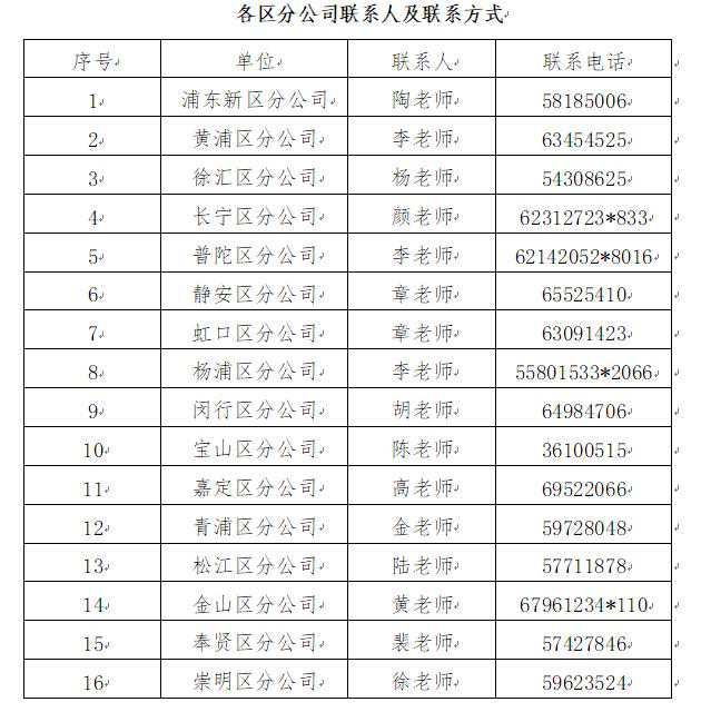 相关网点信息可详询区分公司联系人
