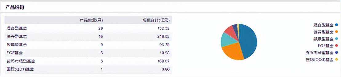 不过,从产品结构来看,泰达宏利权益类基金规模并不大。其中,股票型基金仅9只,规模为96.78亿元;混合型基金29只,规模仅132.52亿元;而16只债券型基金,规模218.52亿元,为泰达宏利贡献约1/3的规模。此外,3只货币型基金规模169.07亿元。