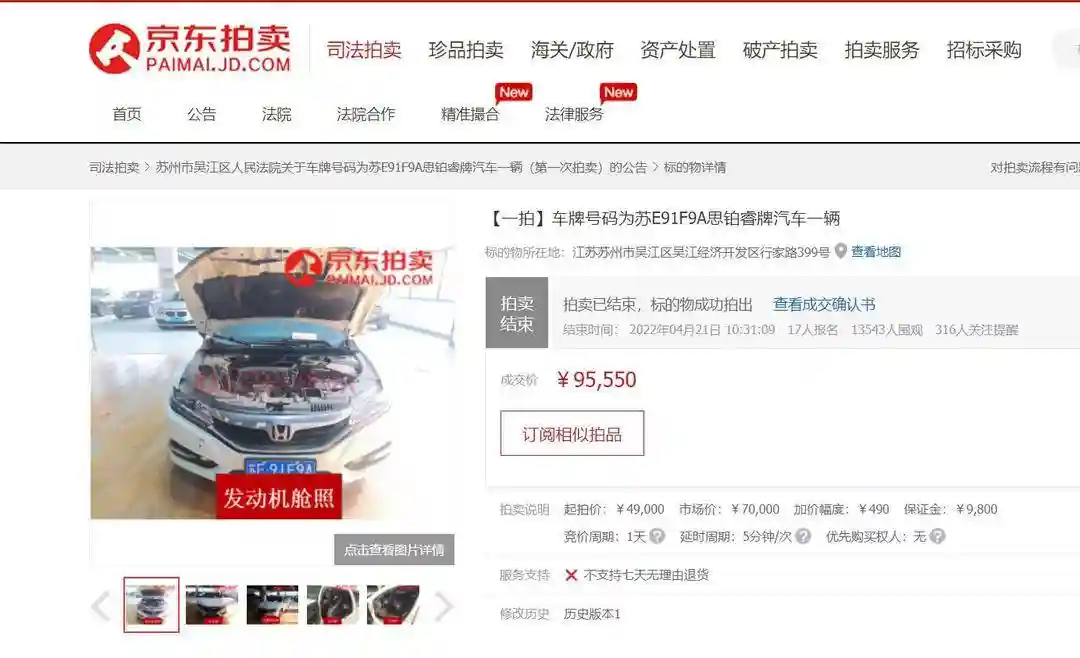 首先,在机动车上拍后,针对车型、功率、排量、检验有效信息,以及逾期检验强制报废期、保险终止日期、目前存放位置等,京东拍卖在页面均配有详细说明,同时在车辆外观检测、内饰检测、装置检测、事故检测等方面,还有专业二手车检测师出具的特别提醒,让竞买人在参拍之前即可对车辆情况进行全面、细致的了解。此外,依托于京东现有的仓储、物流服务体系,京东拍卖在全国建立了超40个司法专用仓,全国法院可就近使用京东车辆停放管理仓。车辆入库后,京东拍卖还会对入库车辆外表、内饰清洗,保证上拍车辆的美观度并对车辆的关键信息风险进行核查,日常期间还会为车辆提供定期维护,避免长时间停放造成故障,同时还有专人配合竞买人看样,全程执法记录仪记录过程。