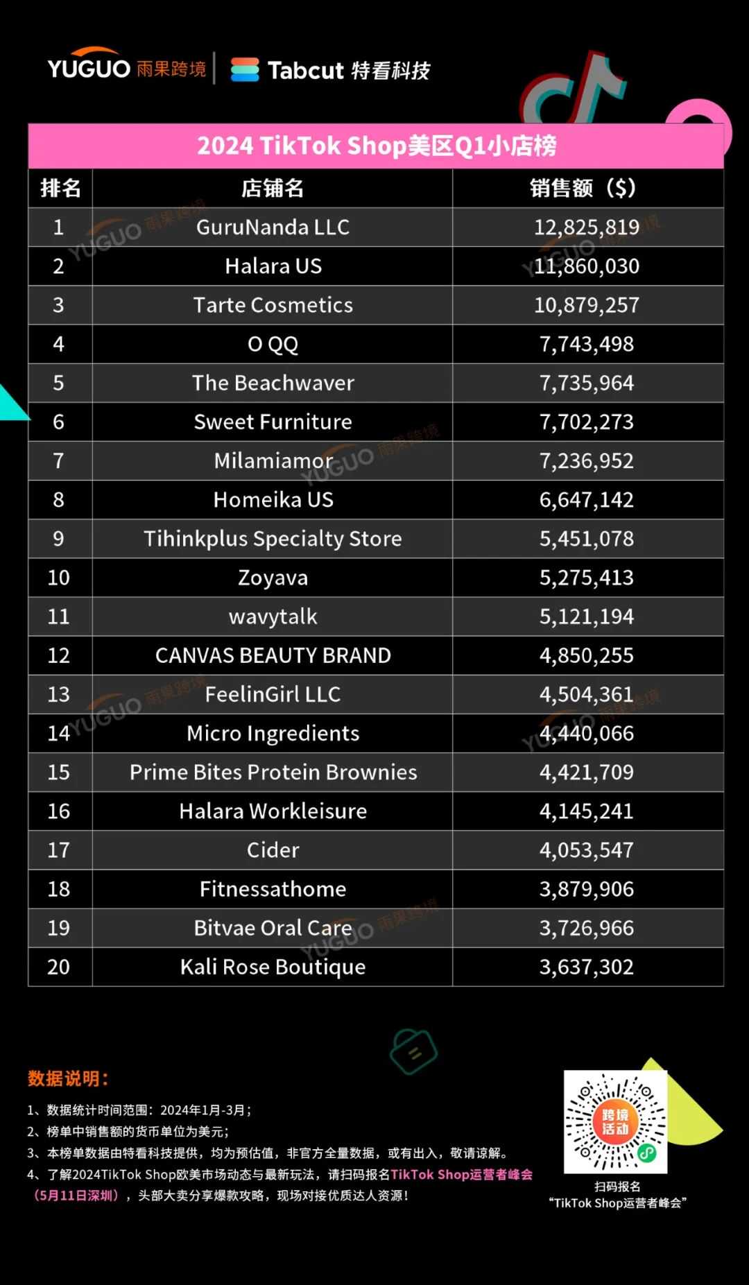 本篇由雨果跨境联合TikTok数据分析平台特看科技以及自媒体“留美小哥玩社交”,重点梳理出2024年Q1季度的TikTokShop美区榜单,涉及TOP小店排名、TOP类目及爆品等数据分析及相关趋势,助力各位卖家了解美国市场现状,结合季度热销类目爆品预判未来趋势。