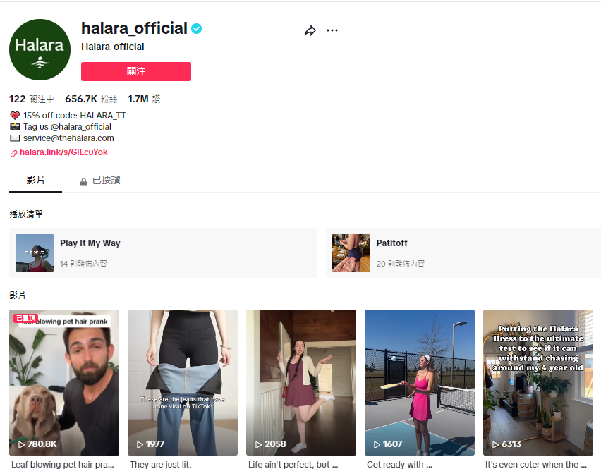 2021年,Halara开通了TikTokShop英国站,并常年稳居运动女装头部行列。2023年10月,Halara正式开通TikTokShop美国小店,凭借先前的成功经验及近几年在美区积累的品牌口碑,入局后迅速抢占了美区市场份额,也带火了不少产品,小店当前也属于运动户外类目的明星店铺。