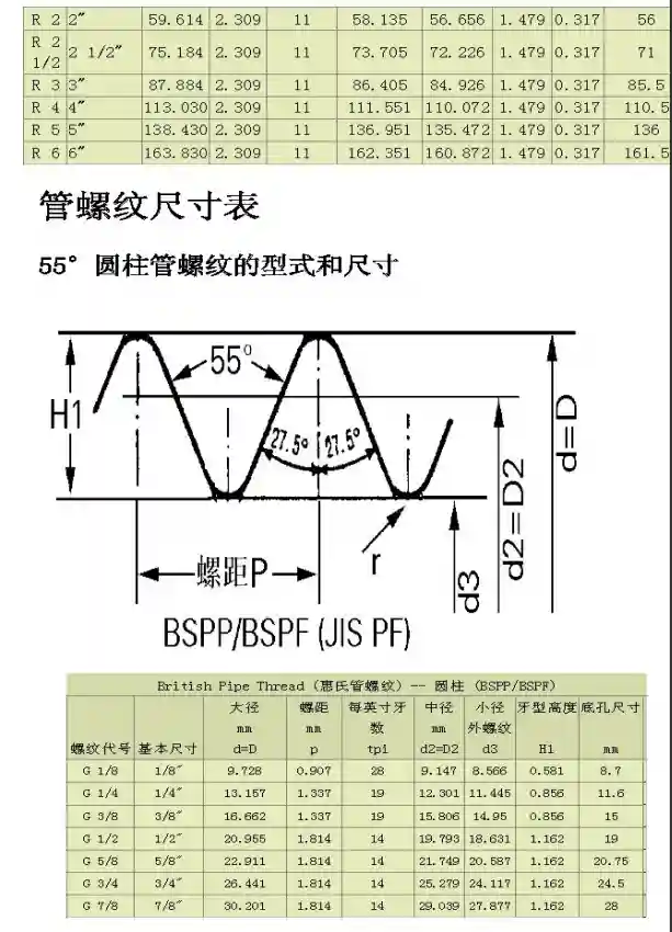 英制管螺纹多用于欧洲及英联邦国家(欧洲国家多用柱/锥管螺纹副),常用于水及煤气管行业,国标查阅GB/T7306-2000。