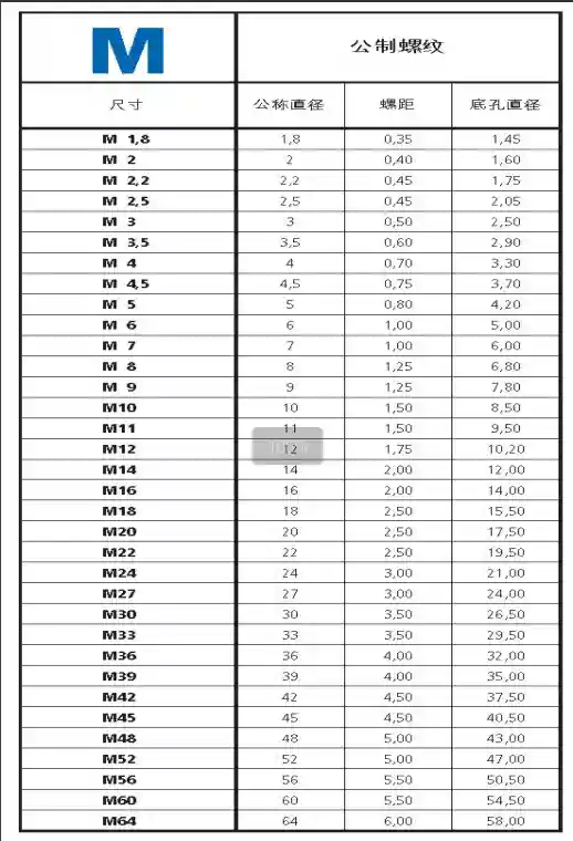 螺纹代号M,牙形角60°,基本牙形为平顶。