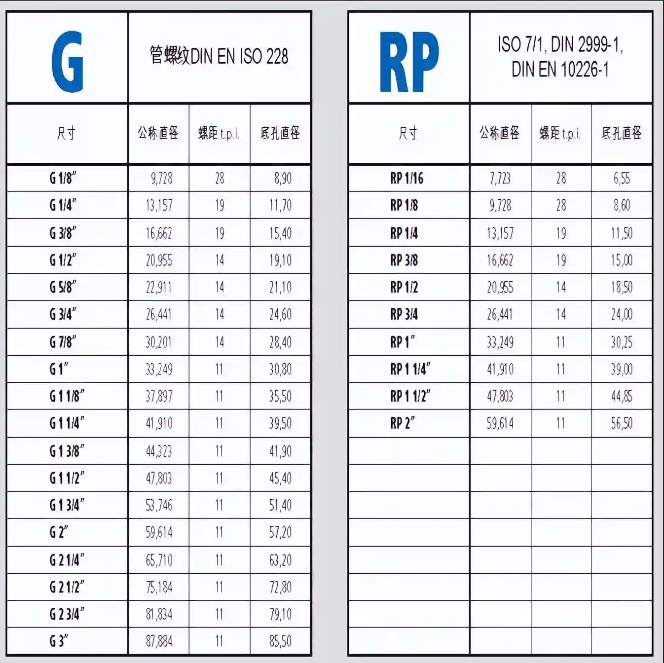 3.G是55°非螺纹密封管螺纹,属于惠氏螺纹家族。标记为G代表圆柱螺纹。国标查阅GB/T7307-2001。