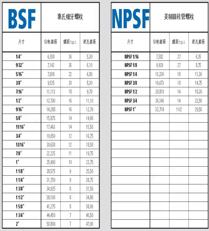 BSPF(BritishStandardPipeFineHandTaps)为英制细牙管螺纹。前面两者用于密封接合,后边一种用于一般的接合。