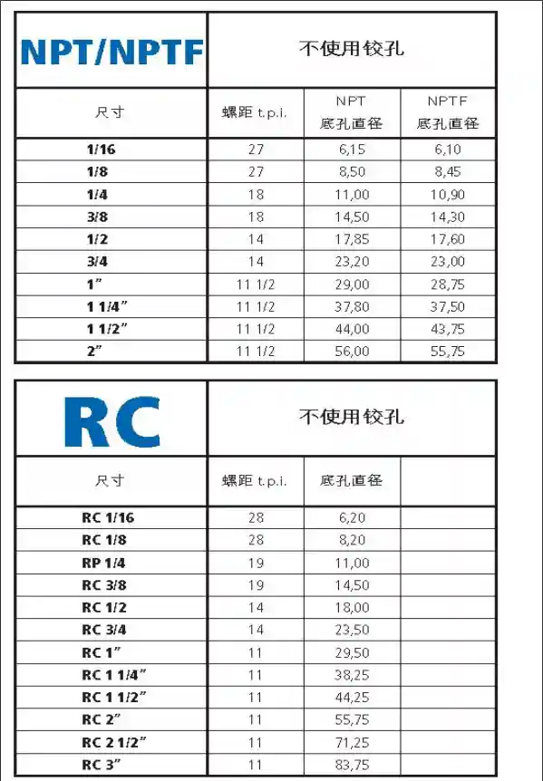 1.美制管螺纹(布氏螺纹)。牙型角60°,单位为英寸。NPT是National(American)PipeThread的缩写,是圆锥管螺纹(内或外),锥度1:16。NPSC是圆柱内螺纹。用于北美地区,国标查阅GB/T12716-2002。