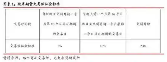 自2024年8月30日(星期五)起,瓶片期货合约交易保证金标准为8%,涨跌停板幅度为±7%。根据《郑州商品交易所期货交易风险控制管理办法》有关规定,瓶片期货合约上市当日涨跌停板幅度为合约挂牌基准价的±14%。
