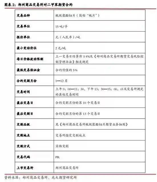 可考虑做缩PR加工差()。根据1吨PET瓶片需要0.855吨PTA和0.332吨乙二醇,以及各品种交易单位来换算,做空2手瓶片期货对应做多5手TA和1手EG。需要注意的是,瓶片装置投产不及预期,瓶片供需改善带来的风险。
