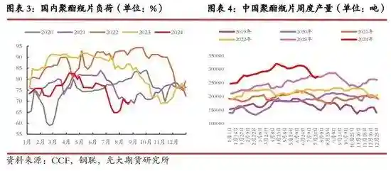 基本面上看,由于近两年国内聚酯瓶片产能投放速度加速,尽管年内聚酯瓶片开工负荷处在历年偏低水平,2024年1-8月国内聚酯瓶片平均开工负荷74.8%,同比2023年前8个月开工负荷88.3%下降了13.5个百分点。但是从聚酯瓶片的产量来看,今年以来的产量为近六年最高,市场供应充足。