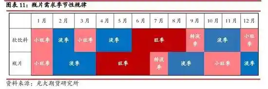 跨期来看,瓶片季节性规律跟随软饮料产量情况。对于软饮料来说,夏季6-8月为旺季,9月逐步转淡,10-11月彻底进入淡季,饮料企业装置检修也集中在此时,12-1月有轻微反弹春节前备货,2月受春节因素下滑,3月集中性补货产量环比回升,4-5月又重回低位。总体而言,二、三季度的饮料旺季会提前1-2个月在瓶片生产中体现。