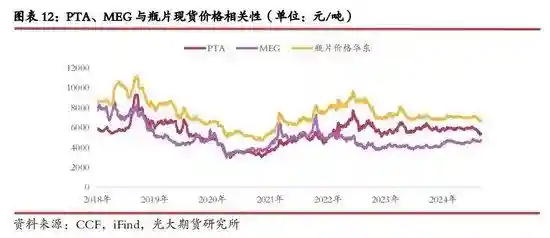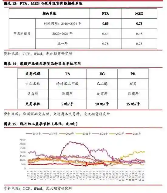 策略逻辑:跨品种来看,瓶片现货价格与原料端TA、EG现货价格相关性较高,2018-2024年华东水瓶片现货价格与PTA现货价格相关系数为0.83,与乙二醇现货价格相关系数为0.73。