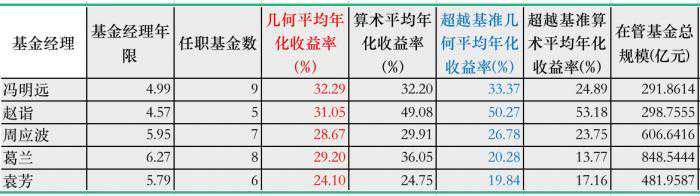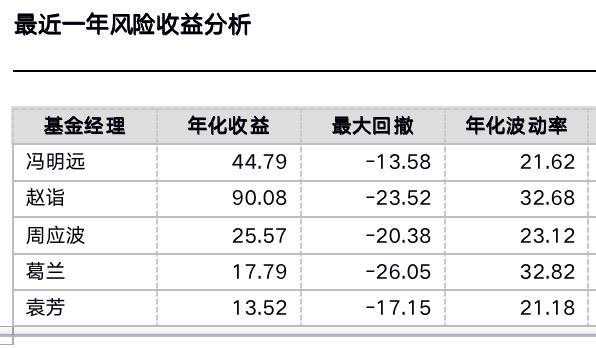 本文就将带大家盘点一下目前业绩不错且各具特色的几位中生代基金经理冯明远、赵诣、周应波、葛兰、袁芳。