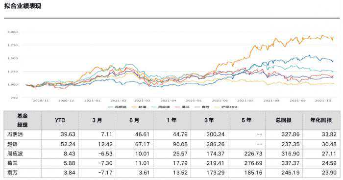 今年以来,Wind的拟合业绩表现是:冯明远52.24%、赵诣39.63%、周应波8.43%、葛兰5.88%、袁芳3.84%。