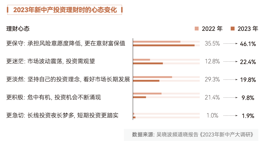 在2023年的《新中产白皮书》中,我们也找到了新中产改变投资态度的蛛丝马迹,今天也分享给大家,作为投资市场“防寒保暖”的一个参考。