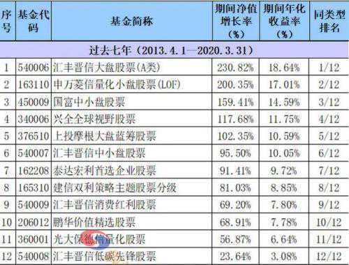 过去七年收益率居前的标准股票型基金