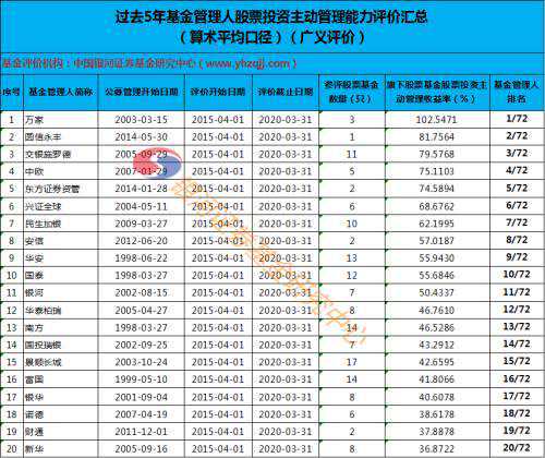 此外,中国银河证券基金研究中心还对公募基金管理人股票投资管理能力进行了评价。数据显示,过去五年间,万家基金、国信永丰基金、交银施罗德基金位居基金管理人股票投资主动管理能力前三。中欧基金、东方证券(港股03958)资管、兴证全球基金、民生加银基金、安信基金、华安基金和国泰基金等也表现不错。