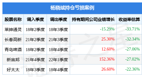 杨晓斌管理的金鹰灵活配置混合A基金在18年2季度买入莱绅通灵,在持有1个季度后在18年3季度卖出。持有期间的估算收益率为-33.71%,持有期间莱绅通灵在2017年到2018年的年报营业总收入降幅为15.29%。
