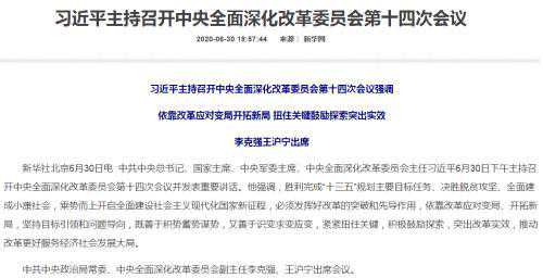 中央力推六项改革,四大板块迎风口据新华社报道,中共中央总书记、国家主席、中央军委主席、中央全面深化改革委员会主任习近平6月30日下午主持召开中央全面深化改革委员会第十四次会议并发表重要讲话。会议审议通过了《国企改革三年行动方案(2020-2022年)》、《关于深化新一代信息技术与制造业融合发展的指导意见》、《深化农村宅基地制度改革试点方案》、《关于加快推进媒体深度融合发展的指导意见》、《深化新时代教育评价改革总体方案》、《关于深化国有文艺院团改革的实施意见》。