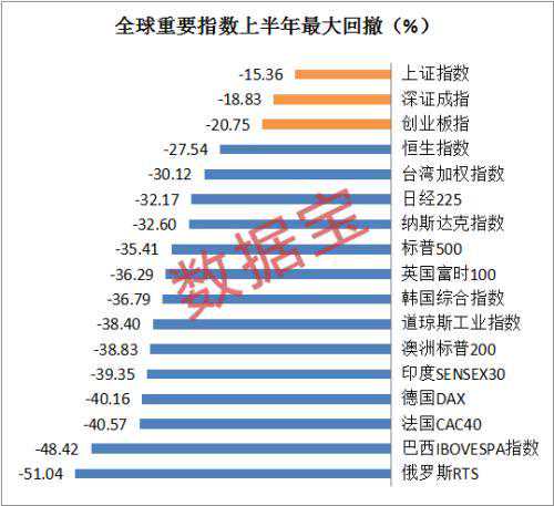 上半年创业板指数最大跌幅为20.75%,上证指数、深证成指的最大跌幅均不超过20%,相比之下,出于对疫情加速蔓延的恐慌,三月全球主要市场指数纷纷创下最快跌入技术性熊市的记录,俄罗斯、巴西、法国、德国指数最大跌幅超过40%。