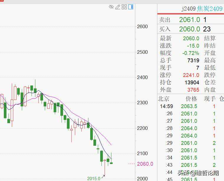 焦炭09周内也是走出一波下跌之后的反弹周线报收一根带上下影线的寸头小阴线,目前焦炭和螺纹的走势维持的较为一致,在周线走势上继续承压短周期均线维持震荡偏弱一些的走势。日线上虽走出一波探底反弹但是延续的力度并不是太大,目前K线继续沿着短周期均线运行,日线的反弹也基本完成技术形态的修复倾向于焦炭还能延续下行。日内走势目前虽暂时维持在低位的震荡,但是在小时级别走势上价格也开始跌破窄幅的震荡区间K线开始逐步击破短周期均线,周一操作上参考2075-85附近空,止损23点,目标2015。