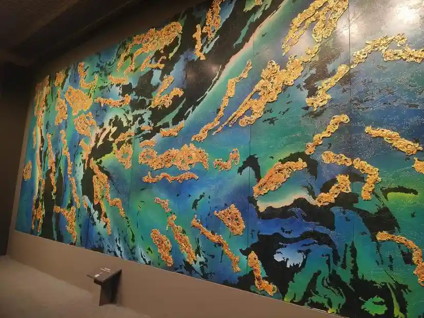 北京,中国国家博物馆,在“熔铸古今——八十而立朱炳仁艺术展”上,100多件/套铜艺瑰宝讲述着传承与创新。熔铜打造出的稻穗形态各异、随风摇曳;蓝白色调的青花元素附着铜瓶,在光影映照下韵味别致;巨幅铜壁画《万泉归海》大气磅礴;纪念梵高的《燃烧的向日葵》折射千年青铜光辉照进现代文明……古朴的铜不再只是人们熟悉的颜色,它变得流光溢彩、映日生辉。对于朱炳仁来说,也许一生只做了一件事,但他改变了中国铜的历史。