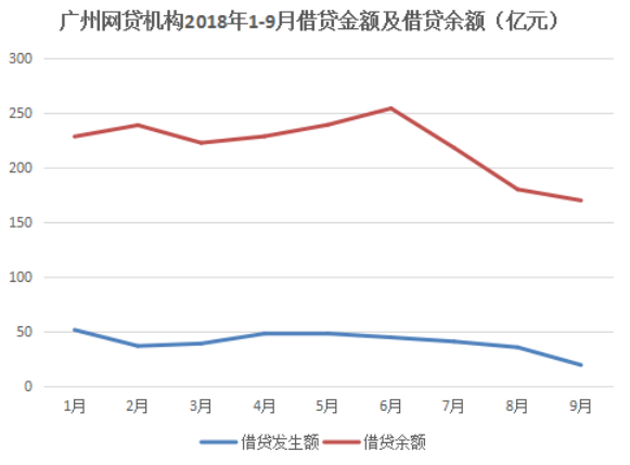 2018年9月,广州网贷机构当月借贷发生额约为19.03亿元,因部分机构以往统计口径包含债转等数据,本月起统一按银监会信披指引口径,故数据出现较大变动;借贷余额约169.85亿元,环比下降约6%。