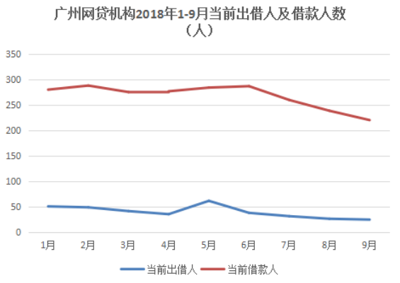 截止2018年9月末,广州53家网贷机构当前出借人数约为25.07万人,环比下降约6%;当前借款人数约为220.81万人,环比下降约8%。
