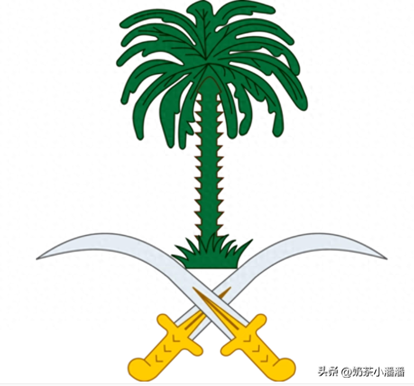 【沙特国徽的主要元素就是椰枣树和弯刀】