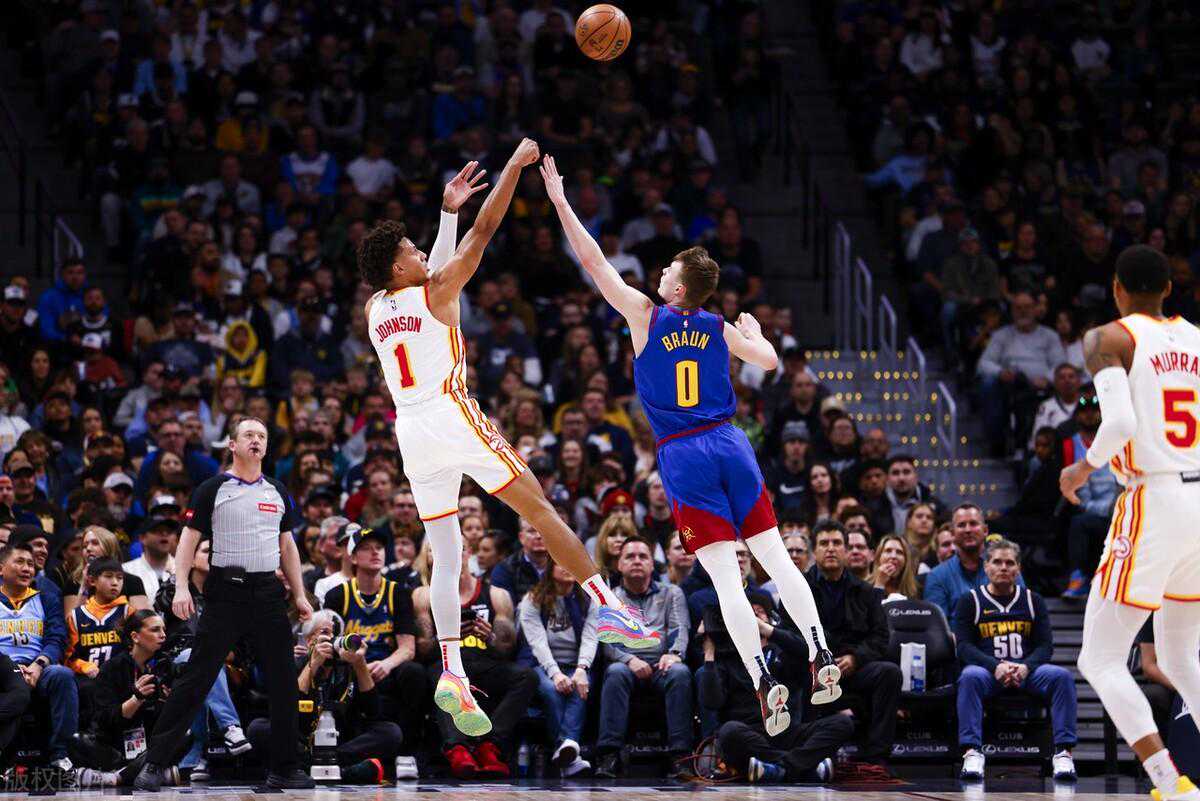 易边再战,掘金队火力全开,约基奇、波特、波普三分连着进;博格丹维奇里突外投、卡佩拉、约翰逊投篮紧咬比分;约基奇中投,穆雷突破上篮打成2+1,随后再飙三分;德章泰穆雷和博格达诺维奇用三分回应;波普和布劳恩三分再进,波特上篮取分;马修斯后仰跳投,德章泰穆雷突破上篮,亨特快攻抛投,老鹰紧追不舍;波普空切上篮,约基奇快攻抛投连续得分,波普三分命中,杰克逊里突外投,末段掘金打出16-6攻势,以111-86领先老鹰25分,掘金单节攻势如潮爆砍42分。约基奇三节打卡。