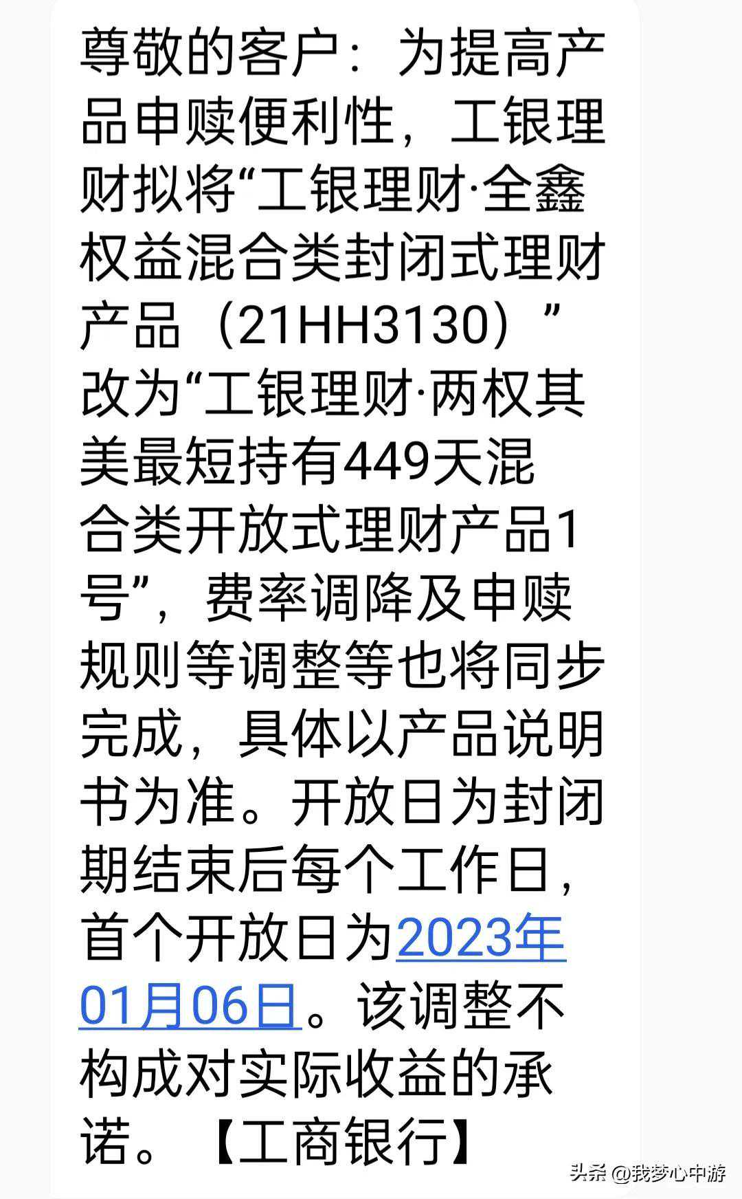 2021年国庆节前后,工行理财业绩比较基准特别高,对比之后,在工行买了不少,本着鸡蛋不放在同一个篮子里,其它银行也买了。同样一年期,日照银行,济宁银行到期能达到4%,邮政2%多,在工行买的一年期只有0.031%,这个理财449天,5万,从2月份就亏本金,过去最多时亏1900多,元月6号可以赎回,二十号一更新亏了2275,我有点生气,终于等来了封转开,意思是到期可以不赎回,继续放着,之后无固定期限,希望可以逆转。