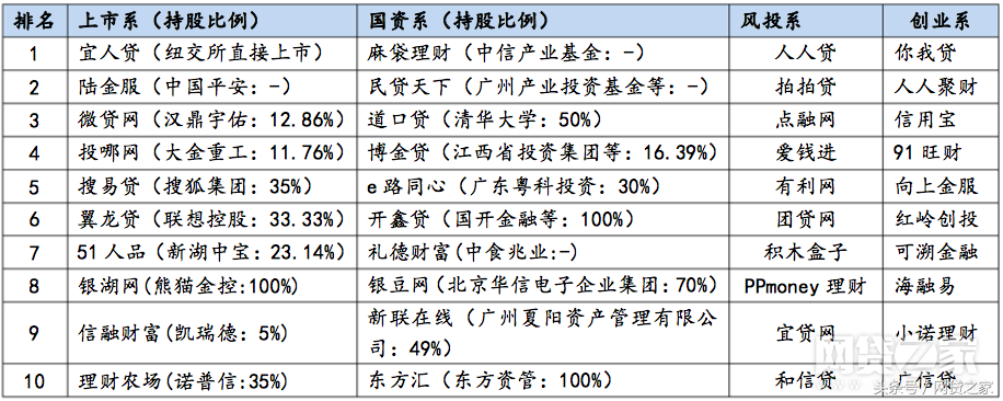 在本部分排行榜中,同时披露了上市公司和国资企业持有P2P平台的股份比例,供投资人参考(一些平台因为股东层级较多,信息披露还不充分,虽然确认了持股成分,但难以查到最终的持股比例)。