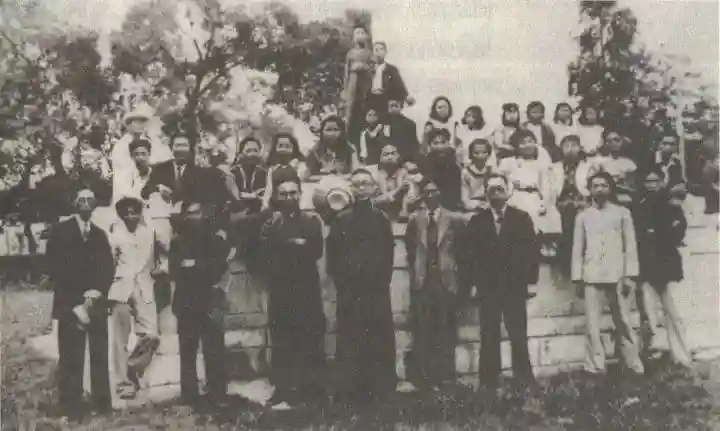 潘天寿(前排左五)、吴茀之(前排左六)与国立艺专师生摄于重庆(1944年)