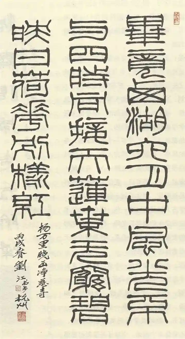 刘江,1926年7月生,重庆万州人。西泠印社名誉社长,曾任中国书法家协会理事、中国书法家教育委员会副主任、浙江省书法家协会首席顾问、浙江省书法教育研究会理事、中国美术学院教授等。曾获中国书法家协会颁授的“德艺双馨艺术家”称号,是“中国书法兰亭奖终身成就奖”获得者。书坛泰斗沙孟海曾对刘江先生的为人和为艺给予了“艺事精能,不拘一格,英绝领导望之斯人”的高度评价。