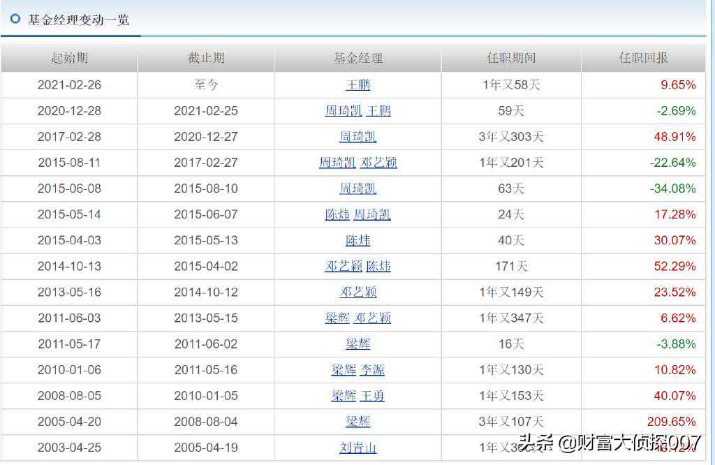 以泰达宏利成长混合这只成立年限较长,业绩较为突出的公司招牌基金为切入点,泰达宏利人事变动之频繁可见一斑。基金成立19年来,已经迎来了它的第15次基金经理变动,最短一任梁辉单独管理仅有16天!