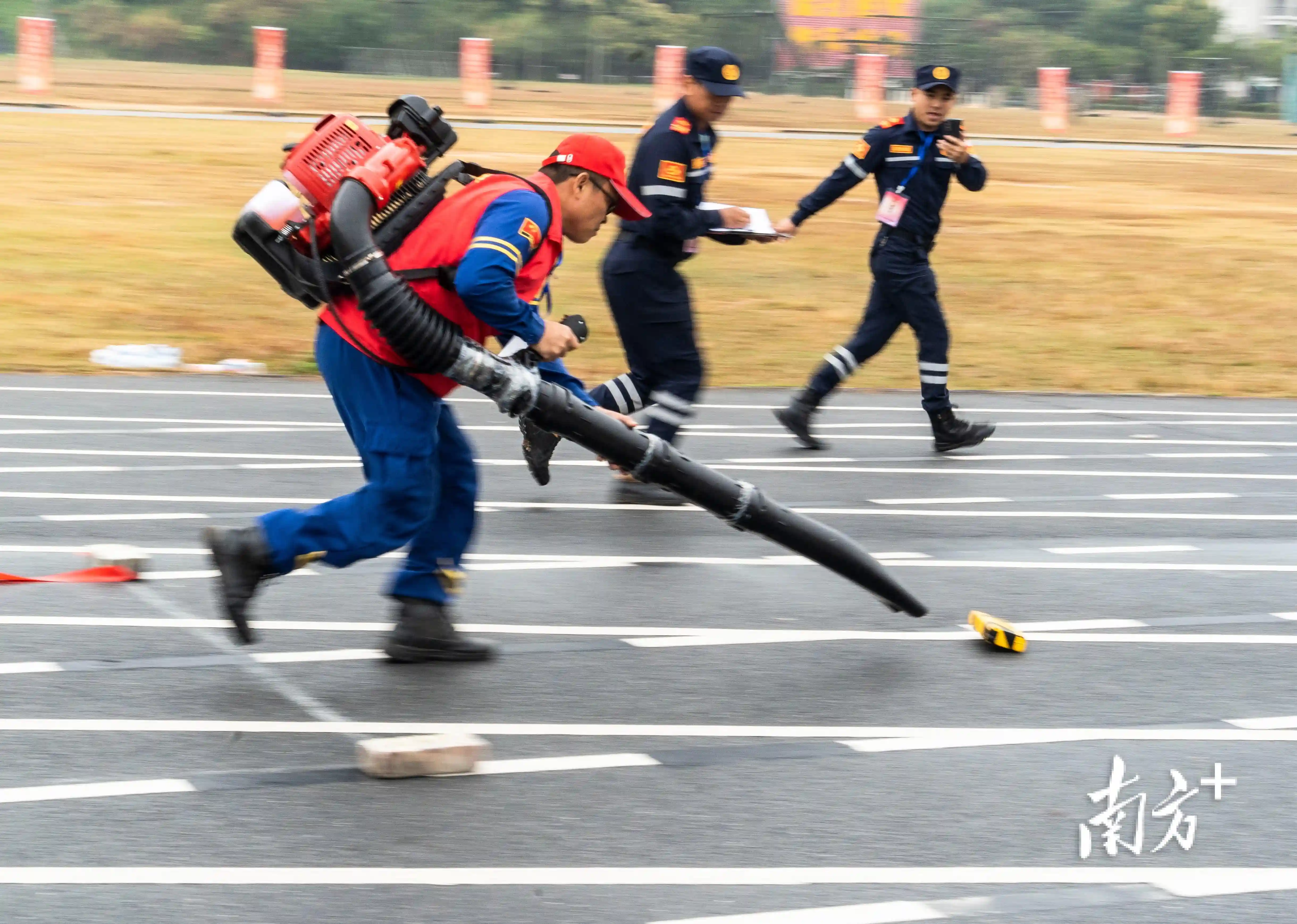 现场还举行了红棉老兵应急救援技能决赛,9支红棉老兵应急救援队伍围绕急救救护、消防水带抛投、风力灭火机实操3个项目进行同场比拼。