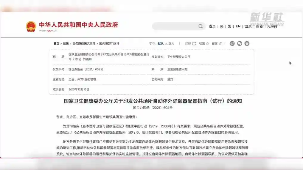 这样的配置符合规范吗?2021年底,国家卫健委印发了《公共场所自动体外除颤器配置指南(试行)》,对AED的配置进行了规定。指南提出,设备安装场所所在单位负责开展自动体外除颤器设备日常巡检并做好记录,发现告。