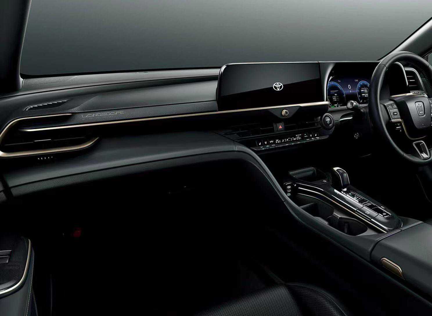 内饰方面,皇冠CrossoverLandscape相较常规版本增加了金色的元素点缀,并且在仪表台上增加了专属的车型标识。其余设计没有太大的变化,依然是非常主流的全液晶仪表和悬浮式中控屏,还有三辐式多功能方向盘,不算太出彩,但也符合主流表现。另外,新车的后排座椅也支持放倒,实用性有所保证。