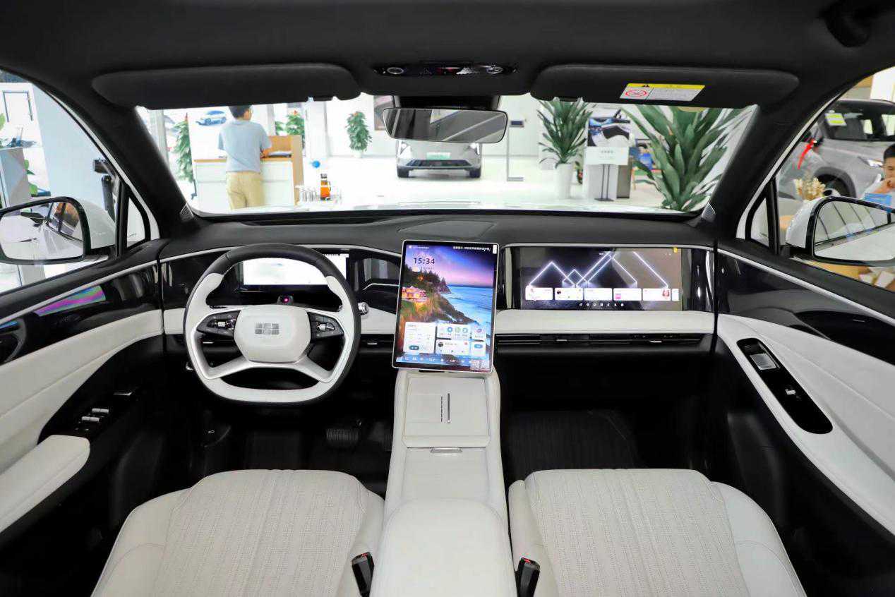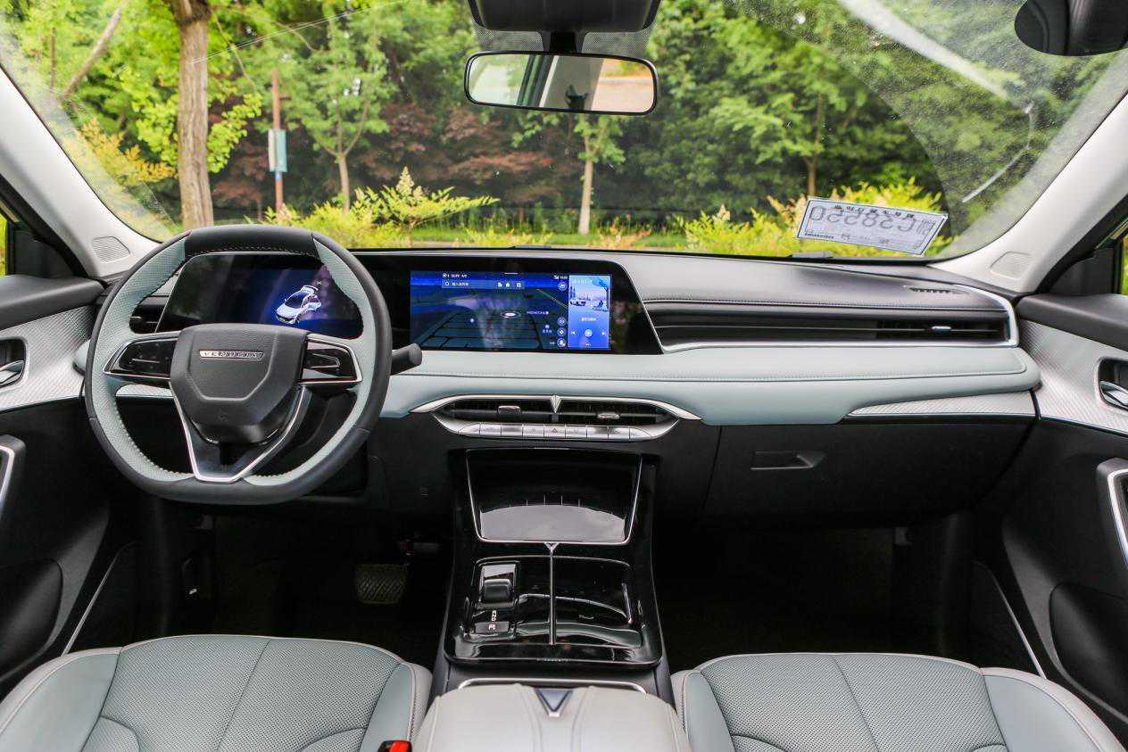 银河L7的内饰就没有太多新鲜感了,几乎是照搬了博越系列的中控,只是在部分车型增加了副驾娱乐屏,加上AR-HUD抬头显示组成所谓的四屏。不过在用料和做工方面,吉利一直都有出色表现,除了大面积皮质包覆其他也大量采用环保材质,乘坐舒适感倍增。作为吉利家族车型,银河L7的主被动安全配置几乎满配,车机芯片骁龙8155,L2级驾驶辅助,中高配前排带通风加热按摩以及座椅记忆功能。