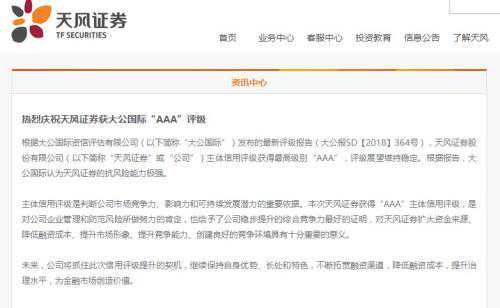 说起天风证券,可能不是人人都熟悉,这是一家总部在武汉的券商,天风的部分高层,曾经在总部也位于武汉的长江证券担任要职。日前,已经获得大公国际AAA评级。