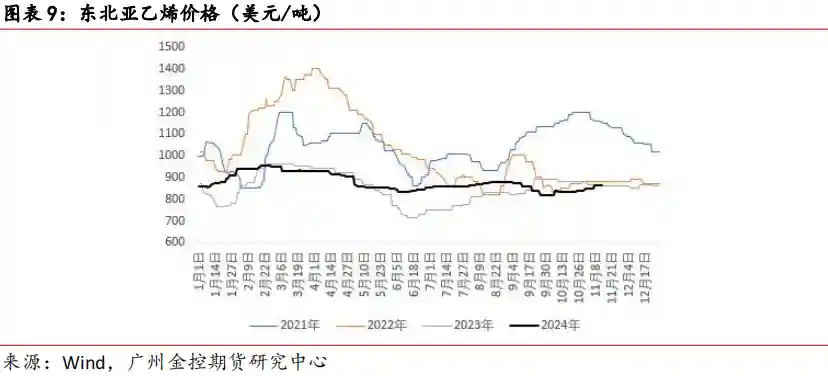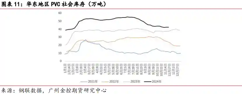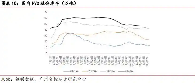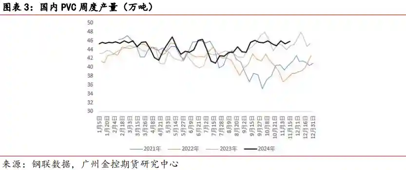 PVC虽有较多新装置计划投产,但由于行业利润不佳,新装置的实际落地进度较慢,今年仅有2套装置落地:1月份浙江镇洋30万吨/年PVC新装置投产;5月陕西金泰1期30万吨/年PVC装置试产,目前未量产,装置负荷不高。预计11-12月仅陕西金泰2期30万吨/年新装置有投产计划,青岛海湾20万吨/年新装置原计划年底投产,现推迟至2025年,新增产能对供应端的增量有限。