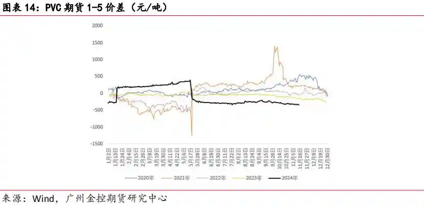 截至11月15日,PVC1-5价差为-343元/吨,较上周同期走弱12元/吨。