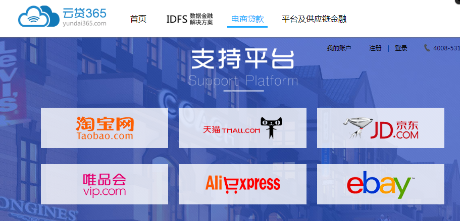 这个平台也支撑多个电商平台的贷款,最高的额度能贷到300万元。其支持的电商平台如下图所示: