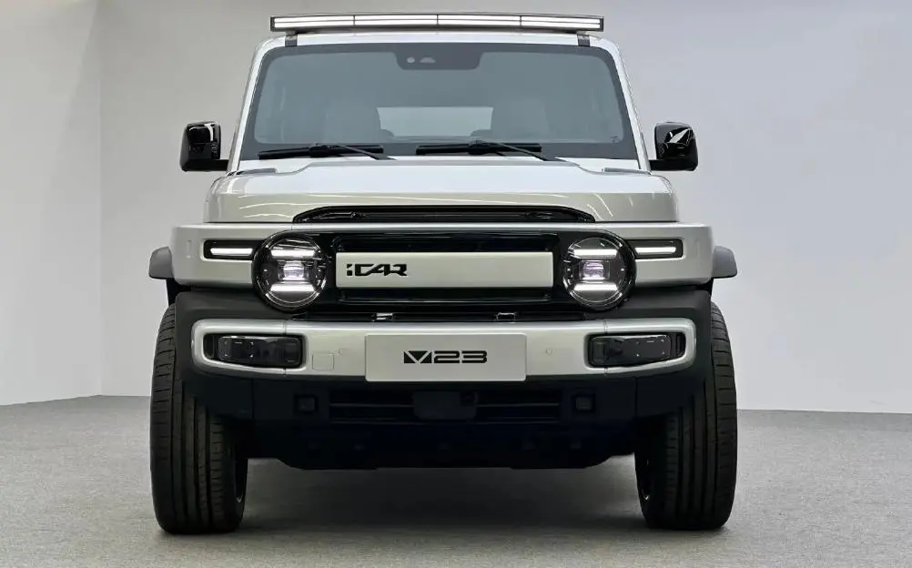 iCARV23这款车的前脸会令无数网友觉得熟悉,几乎集齐了BJ212的“一拱,二圆,三横,四纵”经典设计元素,让它看起来就像赛博212那样。银色车身、钢琴烤漆中网大灯边框、“工”字型大灯内构,看起来就十分前卫。前杠两侧黑色块状并不是单纯的装饰,而是毫米波雷达探头。